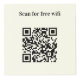 For hotel rooms, restaurant tables, rental properties. Personalize and add your business logo, and space for 4 QR codes. Ivory coloured background. Black text.