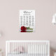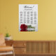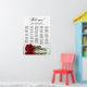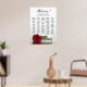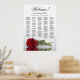 This gorgeous wedding seating chart features a photo of a long-stemmed red rose lying on its side reflecting in a pool of water with waves and ripples. The main title reads "Welcome!" with subtitle reading "please find your table" in elegant lacy script calligraphy. There is space for the up to 200 names with the names of the couple and wedding date below. Wonderful way to help your guests find their tables while making your reception more beautiful.