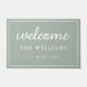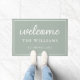 Personalized family name door mat featuring elegant calligraphy script and modern design.