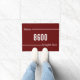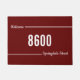 Large white house numbers can be personalized to make a unique housewarming gift. The house numbers are in the centre of a dark red doormat. Above the numbers, you can write your custom message (shown: Welcome). Make it a street address sign by changing the display text under the house number to the recipient's street. All text is white and can be edited or deleted.