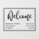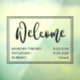 Opening hours window cling featuring black or custom colour text on a transparent background with the text "welcome" in an elegant calligraphy script font.
