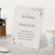 Pretty floral edges highlight this any occasion customizable welcome sign featuring two sections of editable text.