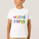 watercolor text-based summer design, welcome summer is a colourful typography design for your summer outfit. grab this vacation beach design for your family members.