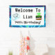 Power up your celebration with this bold and playful gamer-themed design! Featuring a gaming controller in a vibrant world filled with “Level Up” birthday cake, confetti, balloons, dragons, airplanes, and more, this fun design is perfect for adding a touch of gaming excitement to your party. This is a welcome to banner!