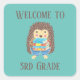 This cute cartoon hedgehog holding books teal sticker will help you welcome your young students on the first day of school . Personalize it with the grade level your teaching this year .