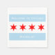 Personalized "Welcome to Chicago" napkins featuring the Chicago flag design with two light blue stripes and four red 6-pointed stars.