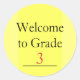 Brighten your classroom and make students feel instantly welcome with this charming round shaded yellow sticker that reads “Welcome to Grade”. Designed with soft, warm tones and a stylish easy to read font, each sticker includes a blank space where teachers can personalize the grade level from Kindergarten to Grade 12. Perfect for first-day-of-school handouts, these stickers add a warm, personal touch that will make students feel seen and excited for the year ahead.