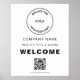 Welcome to Company Your Logo QR Code White. A stylish way to welcome your delegates or visitors to your company event or work place. Replace the sample placeholder image with your company logo and website QR Code, and easily personalise your company name, website and welcome message. You can also change the font styles and colours if you wish via the Edit Further option as well as the black background.