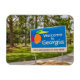 State sign for Georgia welcomes visitors in a shaded rest area where the sign says, “We’re glad Georgia’s on your mind.”