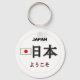 Button or keychain with Japan Euro styled print and Youkoso printed on bottom as ようこそえ日本 Youkoso e nihon.