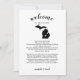 Share a welcome message for your Michigan wedding guests as well as an itinerary or schedule of the weekend's events. Front features your welcome message with a silhouette map of the state of Michigan with a heart inside. Handwritten and typeface mix of style make this program really outstanding.