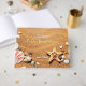 Welcome To Our Beach House with a sand and sea shells cover with casual yellow and white text. Click “Edit Using Design Tool” to change colours and type styles.