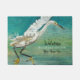 Welcome To Our Beach House Shorebird Art Doormat. Gorgeous coastal egret shorebird painting of snowy egret on water. This art has a unique and rustic distressed faux wood background giving it a weathered coastal beach style. Perfect for the cottage, lakeside or beach home. Accent your beach home or vacation rental property using this doormat upgrade décor. Easy to personalize with your family or rental property name. Art from Jenn's Emporium.