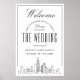 It features a large welcome greeting towards the top and a stylized illustration of the city's unique skyline resting towards the bottom. In between this sits your wedding day information, including the date, city, and the names of the lovely to-be married couple.