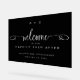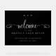Set the tone for your special day with this sleek black-and-white acrylic wedding sign. Featuring "Welcome to Our Happily Ever After" in a stylish handwritten script with graceful swashes, this modern minimalist design is effortlessly elegant. Personalize it with your initials, names, and wedding date for a timeless, sophisticated touch. © Kimbellished, LLC