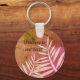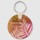 House and vacation rentals are becoming more and more competitive. Set your rental apart from others with this personalized keychain. "Welcome to our home" is accompanied by pale pink leaf silhouettes against a marbled pink and orange background. All text can be customized to suit your needs.