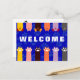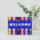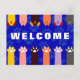 A cute dog and cat cartoon, bold welcome greeting and warm message inside. Easy to personalize for your office.