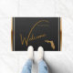Welcome your guests in style with this classy doormat. The door mat features an elegant design with a black background and rich gold-colored Florida State map. The fancy script text reads "Welcome to our retirement home." The doormat is lovely for any Florida resident and makes a perfect gift for those with classic refined taste! Available in two sizes for your covered front porch, deck, lanai, laundry room, mud room, garage, or sunroom! Special design requests accepted.