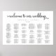 This minimal black and white alphabetical seating chart is perfect for an elegant and classic wedding. You can change the background colour. Just click the customize further link, shown under the text personalization area on the right, and choose your custom colour background. This horizontal sign can be used to organize your guests alphabetically or by table number by changing the headings. This wedding poster includes enough room for up to about 100 guests. Make room for more (or less) guests by clicking the "customize" button and decrease or increase the size of the font.