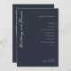 This wedding program features a sophisticated, modern design with a navy blue background and elegant white script typography. The layout is clean and organized, showcasing the ceremony details in a structured format that includes sections for procession, vows, unity ceremony, and recessional. The minimalist aesthetic creates an inviting and formal atmosphere, perfect for couples seeking a timeless and classic look for their special day.