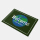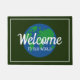 Welcome to our world globe map custom welcome doormat for home entry, porch, hall, shop, store etc. Personalized door mat with elegant typography. Custom home decor with quote or your family surname. Fun decorations and accessories for your new house, office or store. Welcome sign rug with world logo etc. Personalize with custom text. Available in small and large size. Green or custom background color.