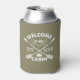 Welcome your weekend guests this vacation-ready can cooler. Olive green koozy features "Welcome to the Cabin" in rustic sandblasted text, with a rope illustration, pine trees and crossed arrows. Customize with your year established.
