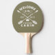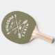 This personalized ping pong paddle makes a great housewarming gift and a fantastic addition to a summer/vacation home. Olive green paddle features "Welcome to the [Name] Cabin" in rustic white text, with two crossed arrows, a cluster of woodsy pine trees and a rope illustration. Personalize with a name and year established for a truly unique paddle!
