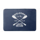Perfect for a guest bathroom or for your weekend home, this navy blue and white bathmat features "Welcome to the Lake House" in rustic sandblasted text, with crossed canoe paddles and a rope illustration. Customize with your year established.