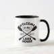 Wind down for the weekend with this personalized mug. Design features "Welcome to the Lake House" in rustic black typeface with a rope illustration and two crossed oars. Customize with the year you started your life at the lake! Great gift for new homeowners or weekend getaway hosts.