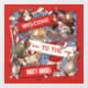 Welcome your party guests with this colourful window cling, featuring a cartoon menagerie of funny animals dressed up like enthusiastic sports fans waving their scarves in celebration. Use "Personalize this template" to change the "WELCOME TO THE PARTY HOUSE!" text if desired. The elated animal crowd includes dogs, a cat, a lizard, a rabbit and a fruit bat.