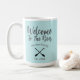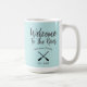 This cute river house coffee mug has a Welcome To The River message that you can edit. Customize it with your family name or a message, all of the text in the design is personalizable. Greet visitors with a morning cup of coffee that can be customized with your name and address by using the editing tool to personalize it.