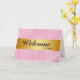 This is rustic Minimal background with gold badge welcome Greeting card. Welcome your new employees to your team and make them feel appreciated with this cheerful and stylish pattern business employee welcome greeting card. This welcome card for new employees or clients in the company.