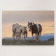 New mom, Theya, leads her tiny foal across the range as the sun begins to rise. Her half-brother, Thor, coming up the rear, keeps the little one in line.