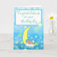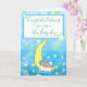 Congratulations on your new baby boy, baby footprints, baby sleeping on the moon green and blue stars card for new parents. This cartoon baby has slightly darker skin for babies of colour such as Hispanic or Indian.
