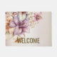 Welcome Watercolor Boho Pink Flowers Elegant Doormat