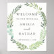 Welcome Wedding Sign Watercolor Green Leaf Wreath