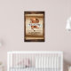 The design features a rustic wood base, a vintage paper scroll, and cowboy/cowgirl graphics. Personalize by typing your own wording over the sample text. You can also add other text or personal images. To access advanced editing tools, please go to “Personalize”, scroll down and press the "click to customize further" link. For more matching designs click the link “Other products from this collection”.