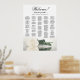 This beautiful wedding seating chart showcases a solitary long-stemmed white, ivory, or cream coloured rose, delicately resting on its side and casting a reflection in a serene pool of water. The title reads "Welcome - please find your table," with the names of the couple and the wedding date positioned below. The chart provides room for up to 200 names, arranged in alphabetical order for effortless navigation by your guests. With its tasteful and refined aesthetics, this design exudes elegance, romance, sophistication, and a touch of chic, adding an air of charm and poise to your wedding celebration.