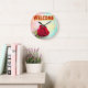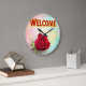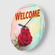 Welcome with rose on large clock