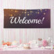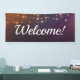Simple, elegant Welcome banner for any event with party string lights background and the word Welcome in a script font. Add more text below if needed.