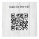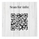 For hotel rooms, restaurant tables, air bnb.  Personalize and add your business logo, and space for 4 QR codes. Rustic white wood as background.  Black text.