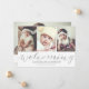 This simple and chic 3-photo birth announcement photo card features a collage with whimsical script lettering that highlights your new arrival. Please note that this is not actual metallic foil and will be printed flat. Add a photo and additional detail to the back. Select a die-cut shape, textured paper or an ultra-thick paper for an extra special invitation.