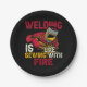 Welding is like sewing with fire paper plate
