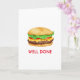 A fun design of a juicy cheese burger. The text beneath says Well Done. The inside says Congratulations on your achievement! This is a great way to congratulate someone on graduation, achieving a milestone or success. This would especially fun to give to someone who loves burgers. Artwork by Delightful-Doodles.