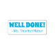This inspirational rubber stamp design features the positive message "WELL DONE!" and a personalized tutor name. It could be used by a teacher, educator, or tutor when marking assignments, to indicate that the student has done well.