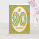 A pretty 90th Birthday Card, with the greeting in Welsh and a pattern of bright orange Pot Marigolds in the border as well as in the numbers. From hand-painted motif by Judy Adamson.