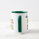 An attractive white ringer mug with a Dark Green Lip and Handle and 'I like coffee' in the Welsh language'. The letters are filled with a pattern of red, orange and yellow nasturtium flowers.