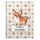 Notebook with charming Welsh Corgi Pembroke. This adorable design showcases cute Welsh Corgi Pembroke. Against a backdrop of dog footprints. Bone like text and customizable name.