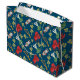 A chic Large Gift Bag, with a pattern of Welsh Emblems, a girl in welsh traditional dress, a red dragon, a bunch of leeks, a harp and a bunch of daffodils. You can easily change the blue background colour if you wish.