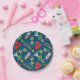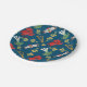 Perfect for your St David's Day celebrations: Paper Plates with a pattern of Welsh Emblems, a girl in welsh traditional dress, a red dragon, a bunch of leeks, a harp and a bunch of daffodils. You can easily change the blue background colour if you wish.